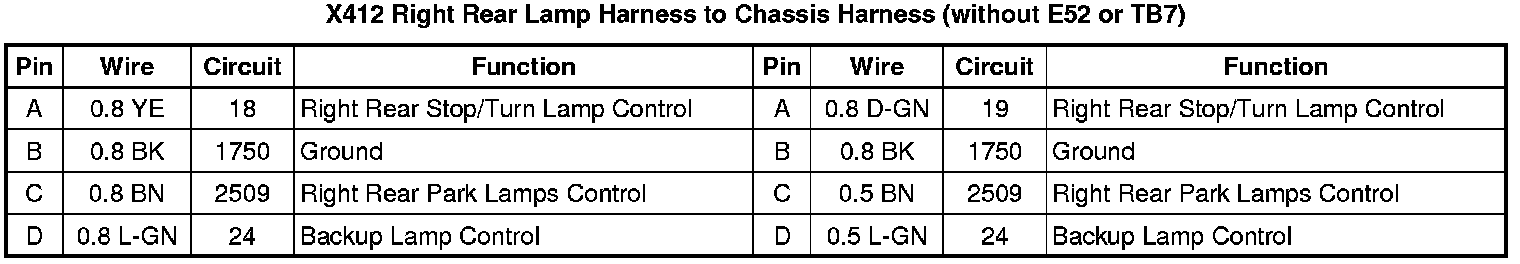 X412 Right Rear Lamp Harness to Chassis Harness (without E52 or TB7)