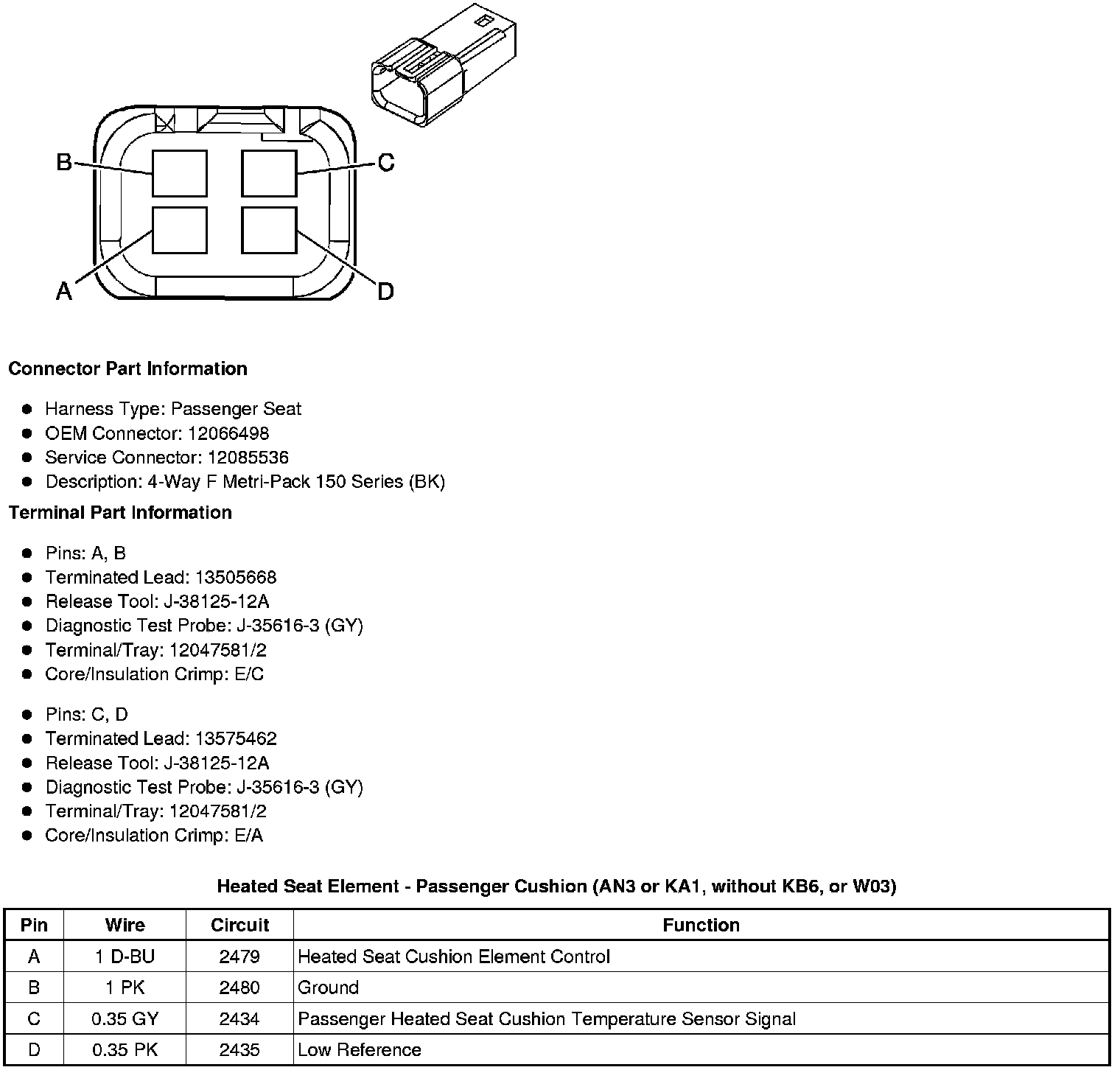 Heated Seat Element - Passenger Cushion (AN3 or KA1, without KB6, or W03)