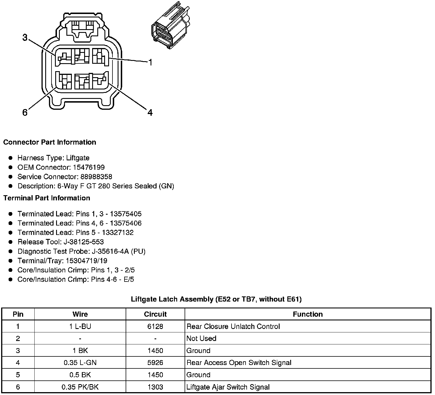 Liftgate Latch Assembly (E52 or TB7, without E61)