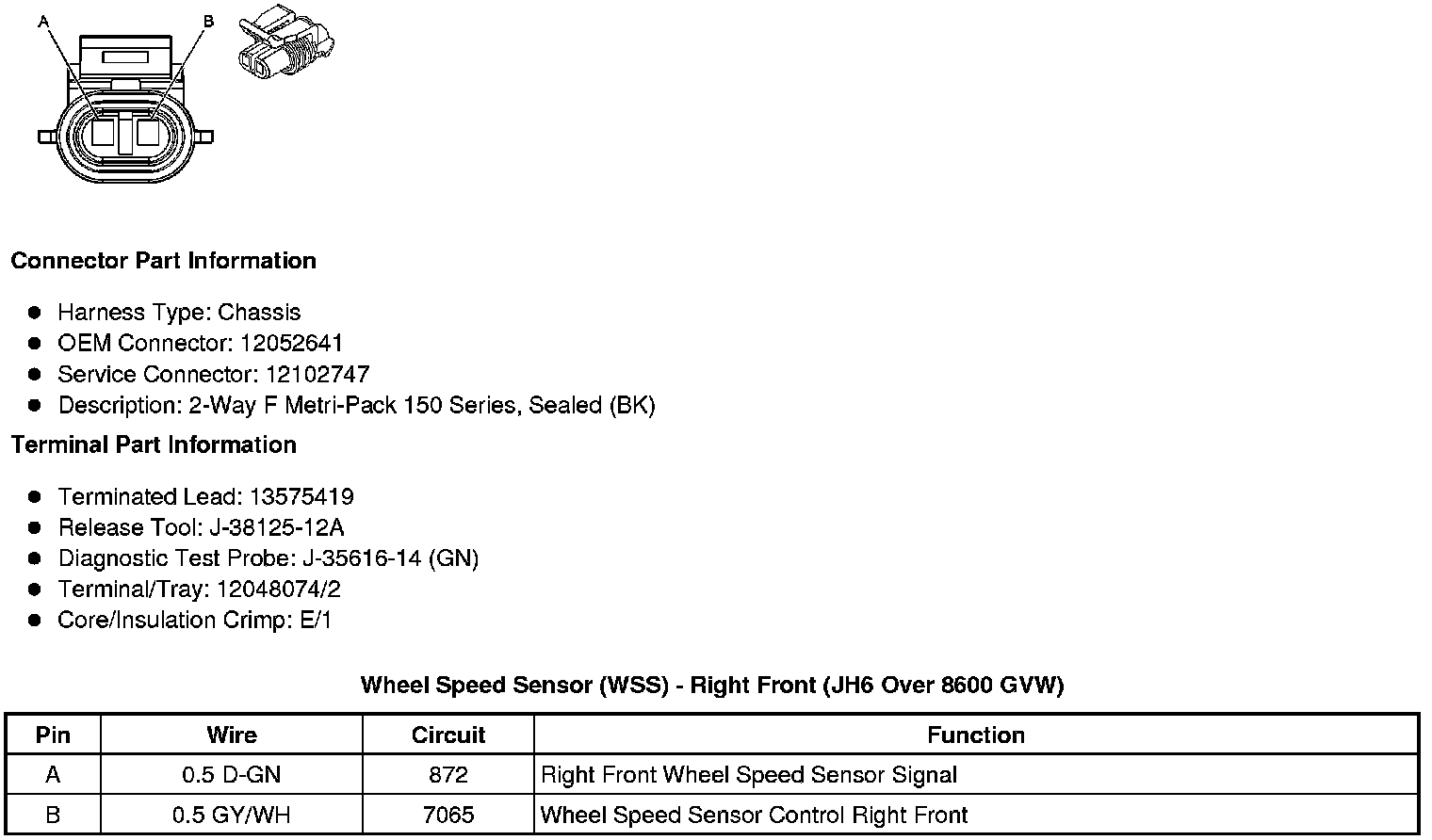 Wheel Speed Sensor (WSS) - Right Front (JH6 Over 8600 GVW)