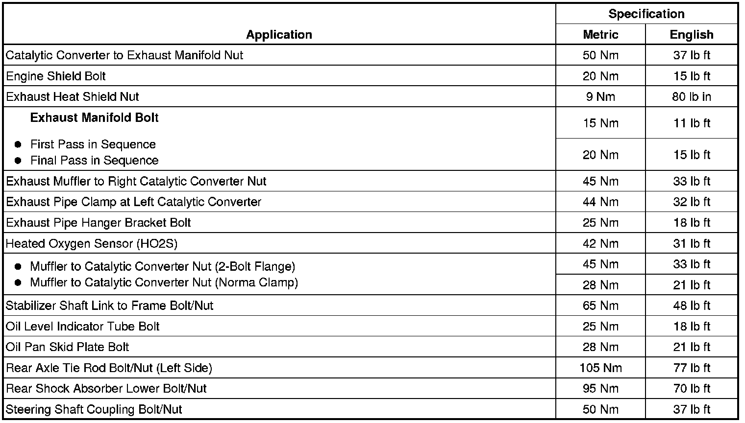 Exhaust System: Specifications