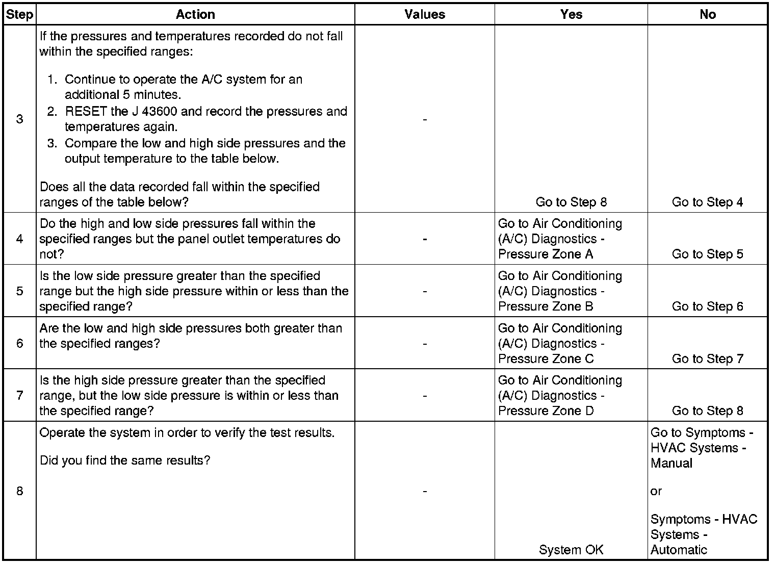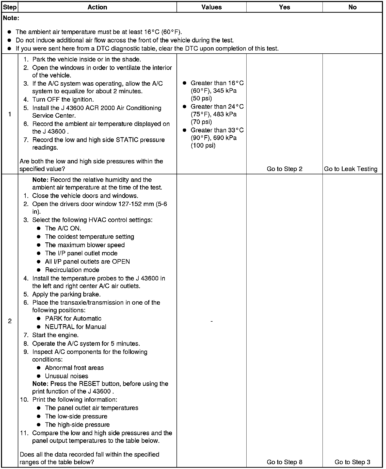 1. This step determines if the A/C system has at least the minimum refrigerant charge required to operate the system without damage.