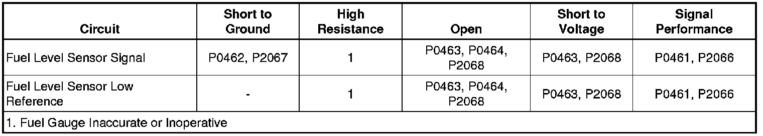 Ignition ON, verify DTC P0461, P0462, P0463, P0464, P2066, P2067, or P2068 is not set