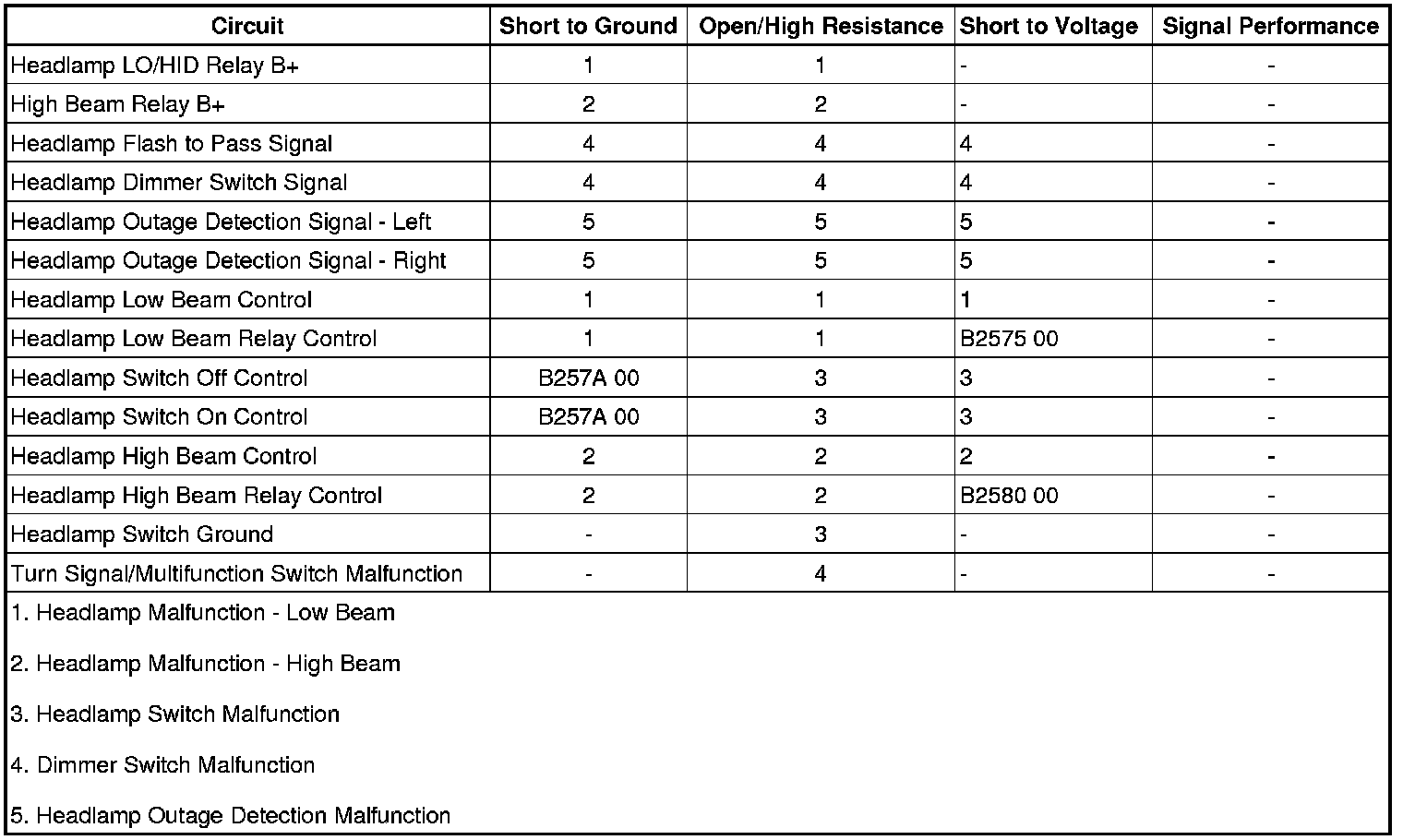 • If the low beam headlamps do not turn ON and OFF when commanded, refer to Headlamps Malfunction - Low Beam.