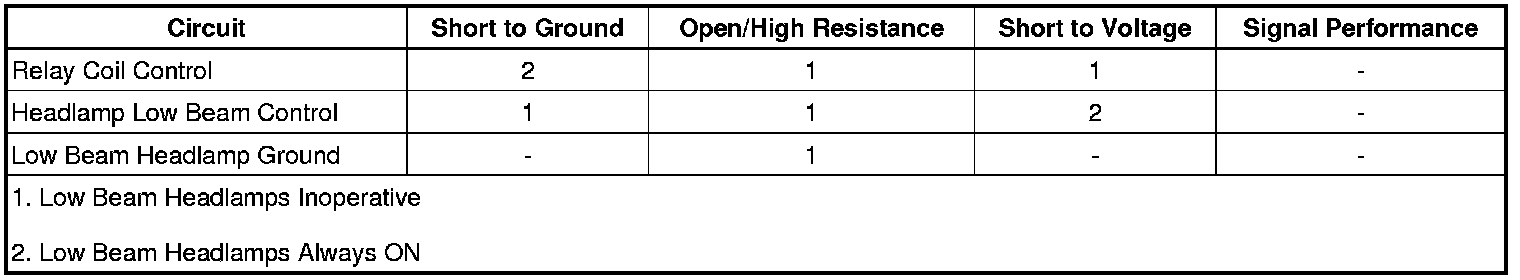 If the headlamp - low beam does not activate and the circuit fuse is open, test the control circuit for a short to ground. If the circuit tests normal, test or replace the headlamp.