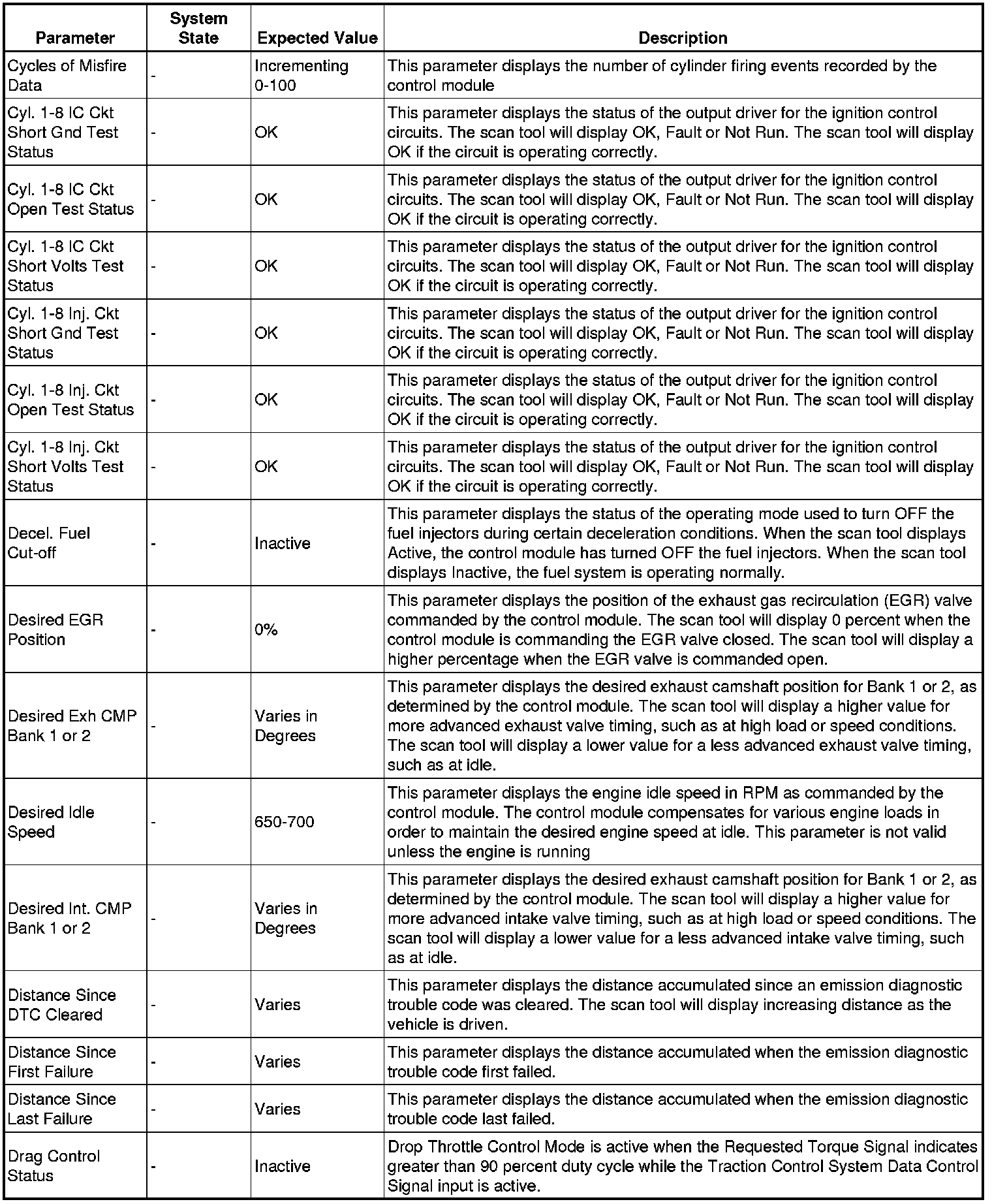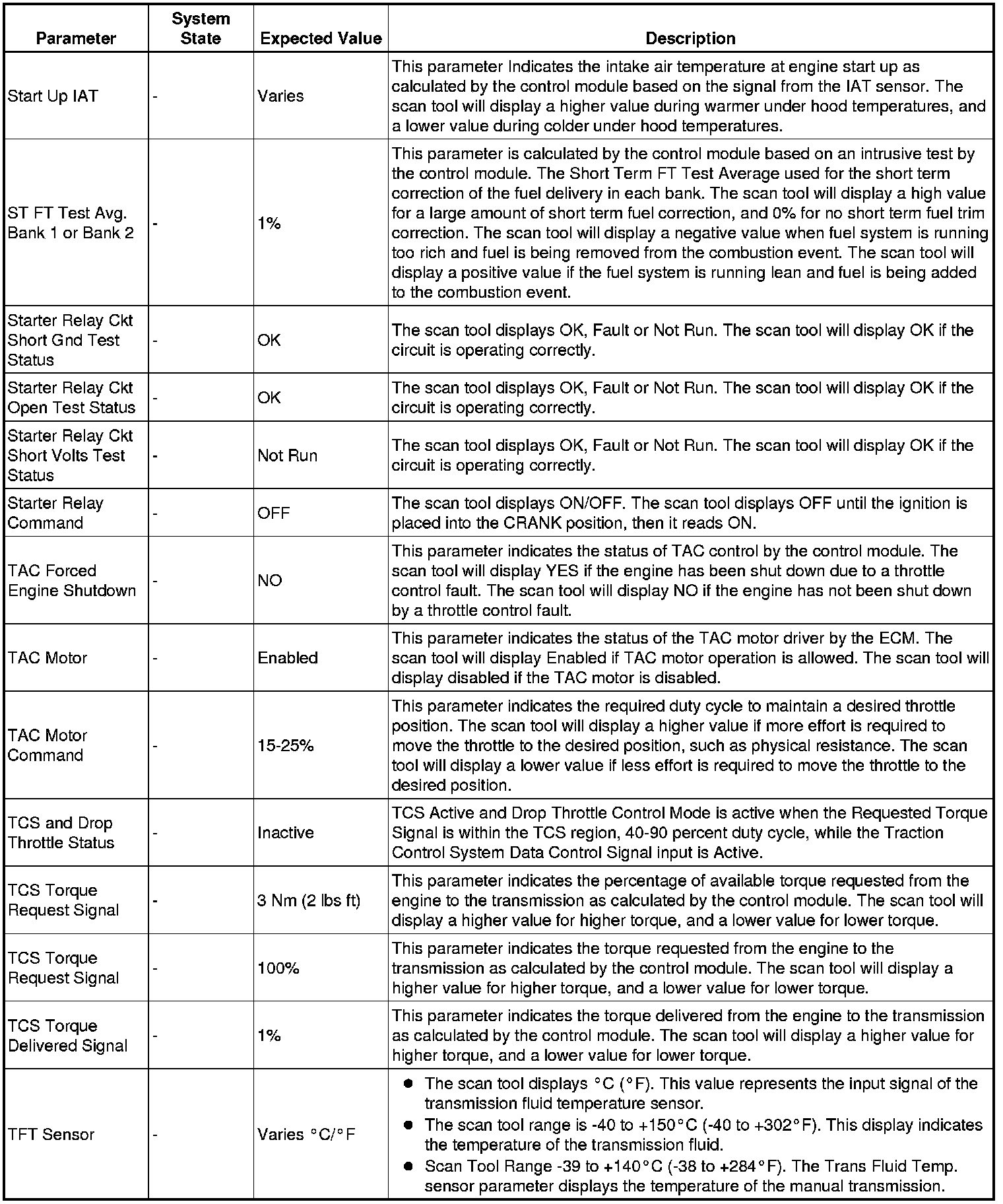 The scan tool values from a properly running engine may be used for comparison with the engine you are diagnosing. The engine scan tool data list represents values that would be seen on a normally running engine.