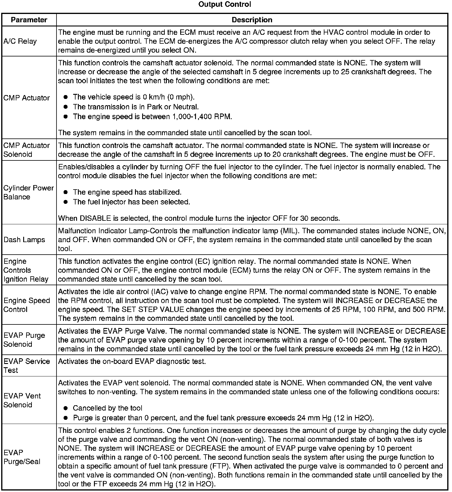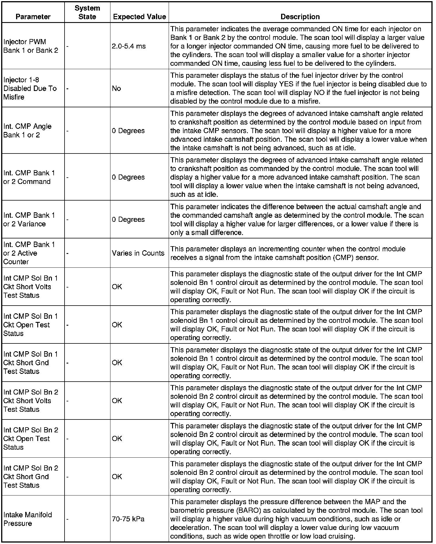 The Engine Control Module Scan Tool Data List contains all engine-related parameters that are available on the scan tool. The list is arranged in alphabetical order. A given parameter may appear in any one of the data lists, and in some cases may appear more than once, or in more than one data list in order to group certain related parameters together.