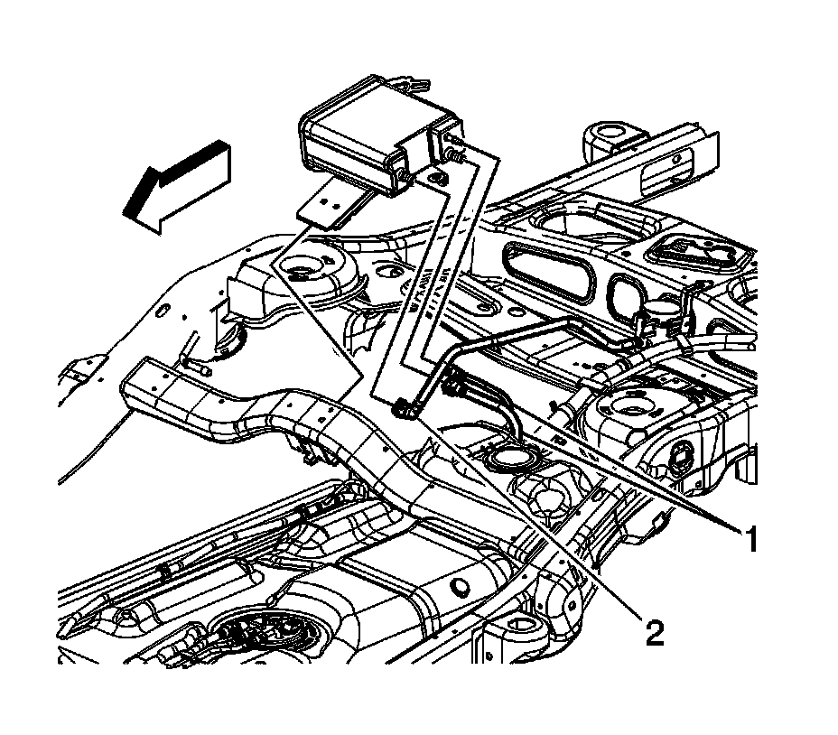 3. Disconnect the fuel tank EVAP line quick connect fittings (1) from the EVAP canister. Refer to Plastic Collar Quick Connect Fitting Service Plastic Collar Quick Connect Fitting Service.