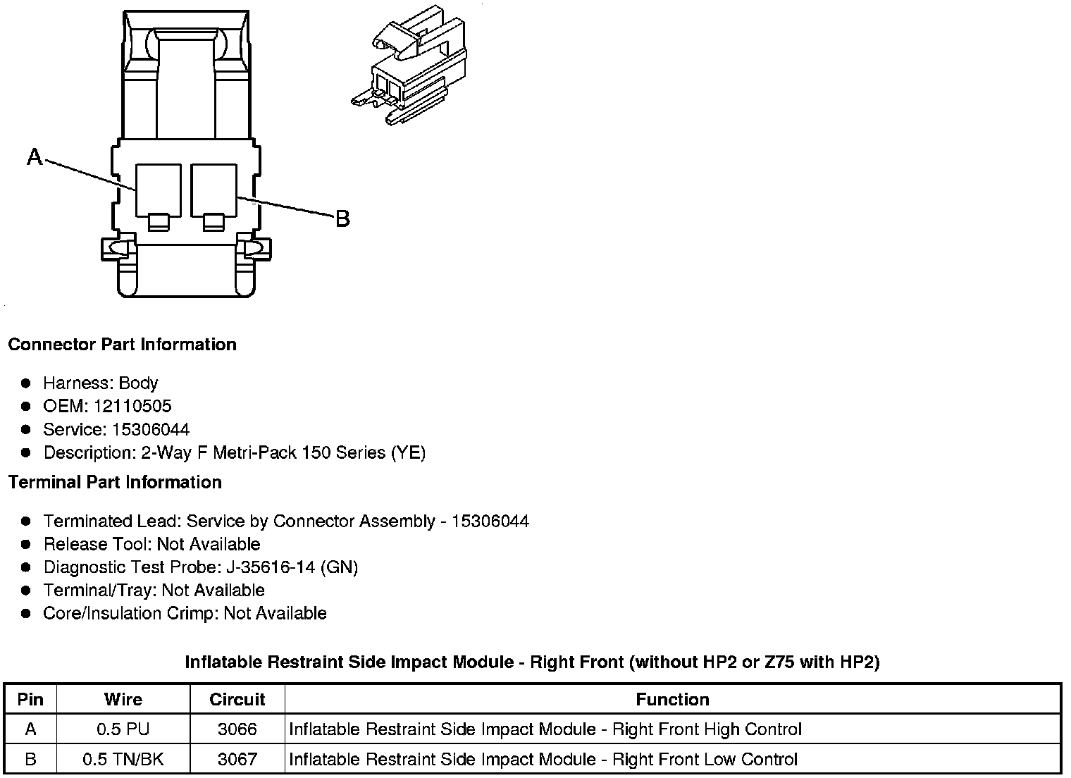 Inflatable Restraint Side Impact Module - Right Front (without HP2 or Z75 with HP2)