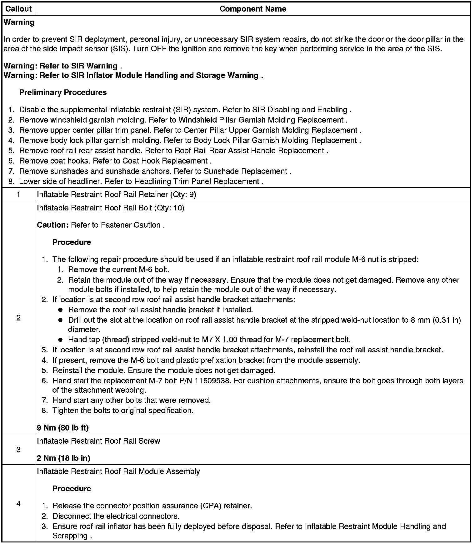 Roof Side Rail Inflatable Restraint Module Replacement