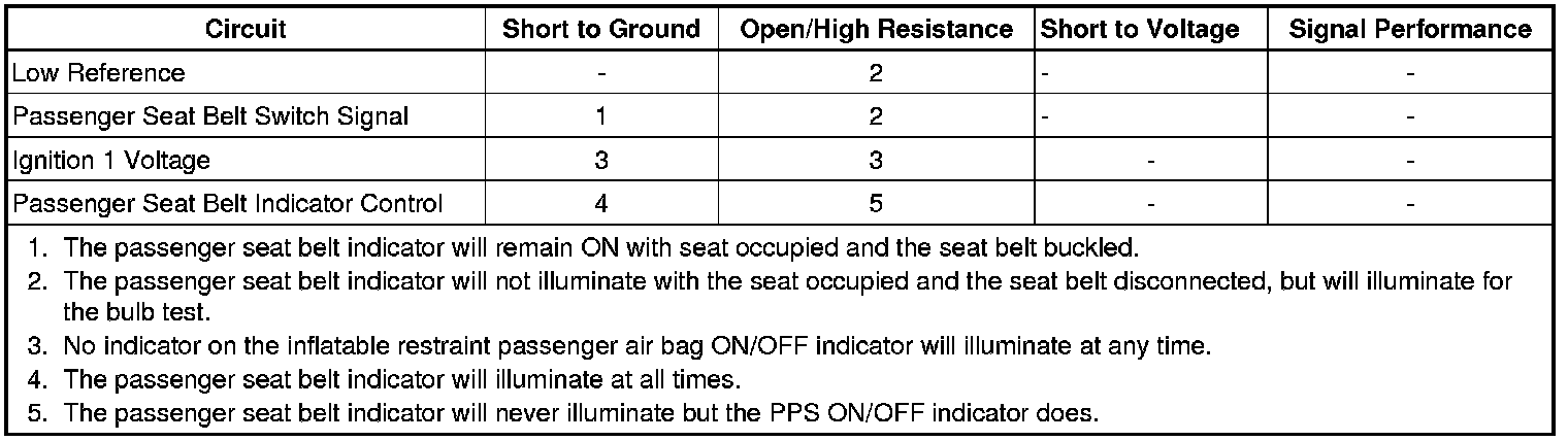 Seat Belt Indicator Circuit Malfunction - Passenger