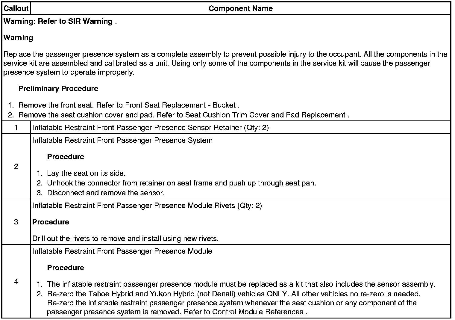 Inflatable Restraint Passenger Presence System Replacement - Front