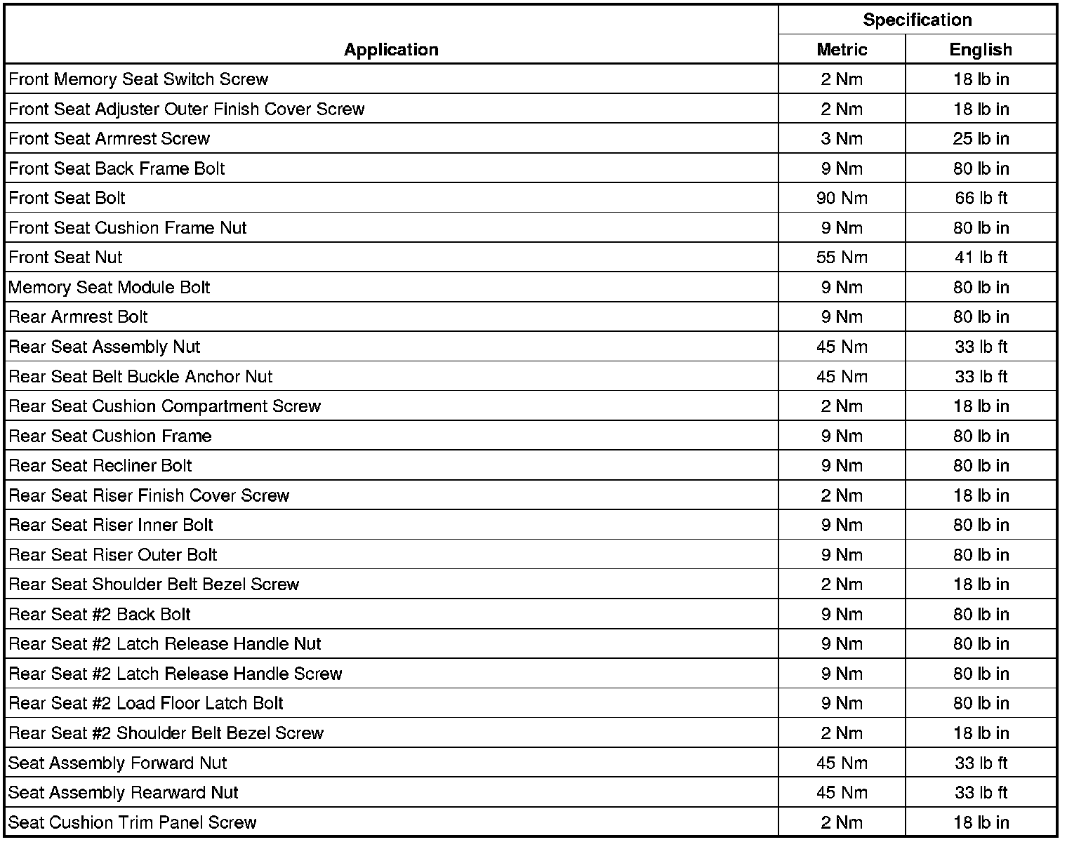 Fastener Tightening Specifications
