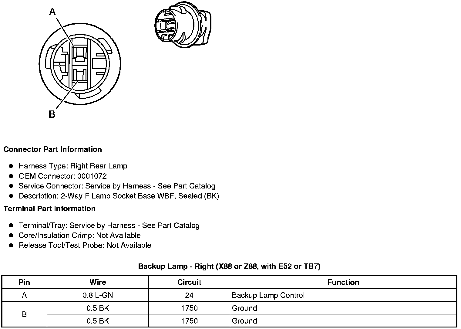 Backup Lamp - Right (X88 or Z88, with E52 or TB7)