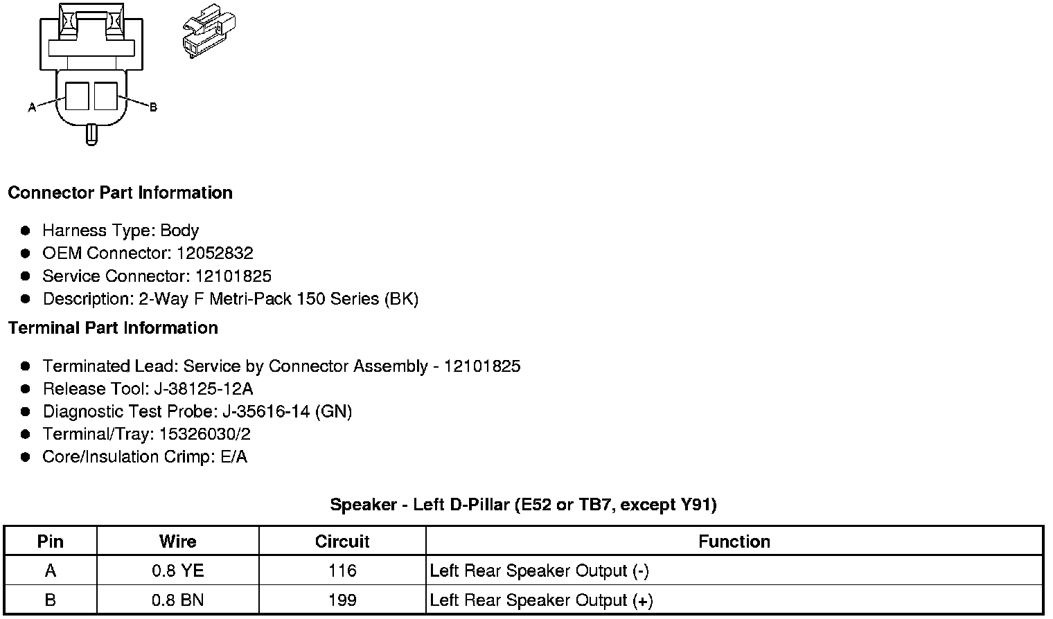 Speaker - Left D-Pillar (E52 or TB7, except Y91)