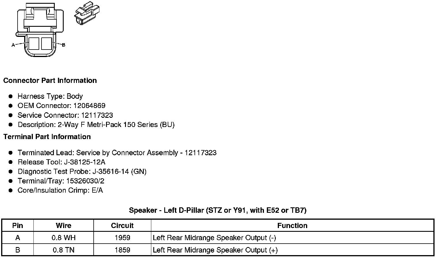 Speaker - Left D-Pillar (STZ or Y91, with E52 or TB7)