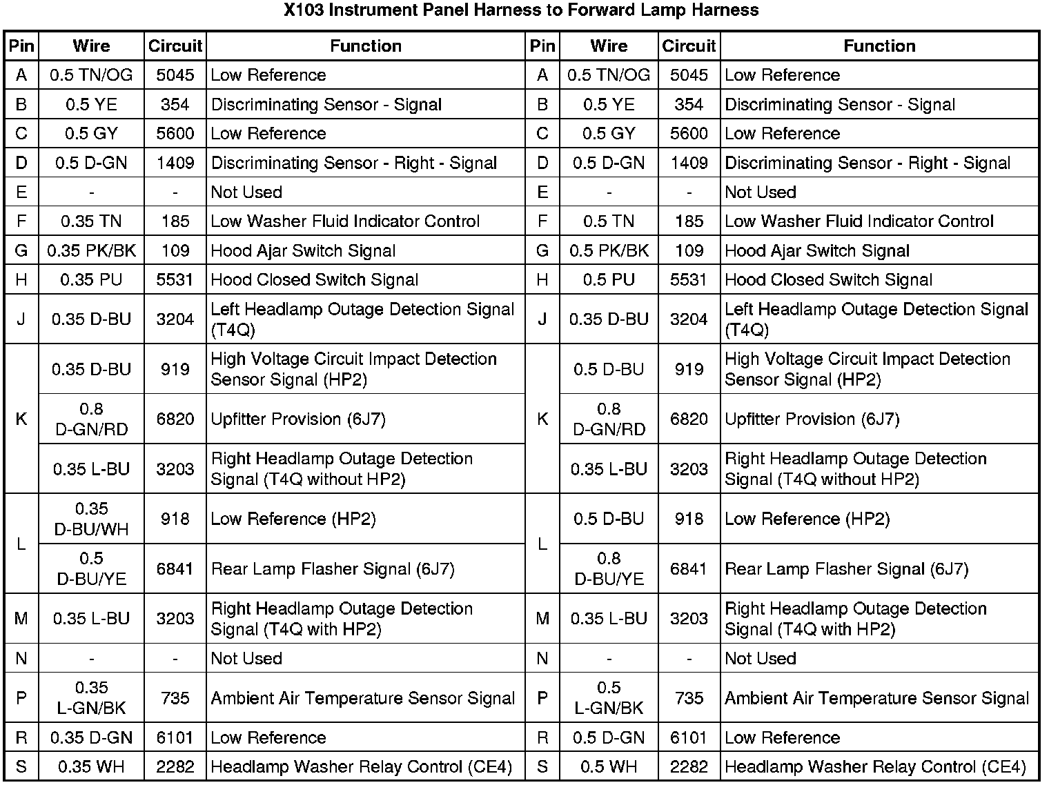X103 Instrument Panel Harness to Forward Lamp Harness