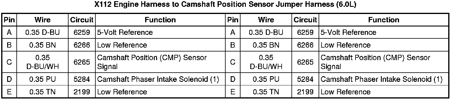 X112 Engine Harness to Camshaft Position Sensor Jumper Harness (6.0L)