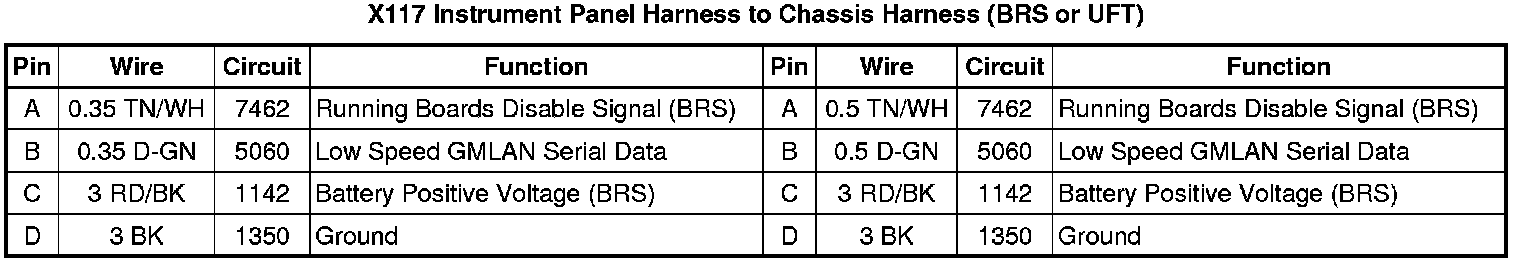 X117 Instrument Panel Harness to Chassis Harness (BRS or UFT)