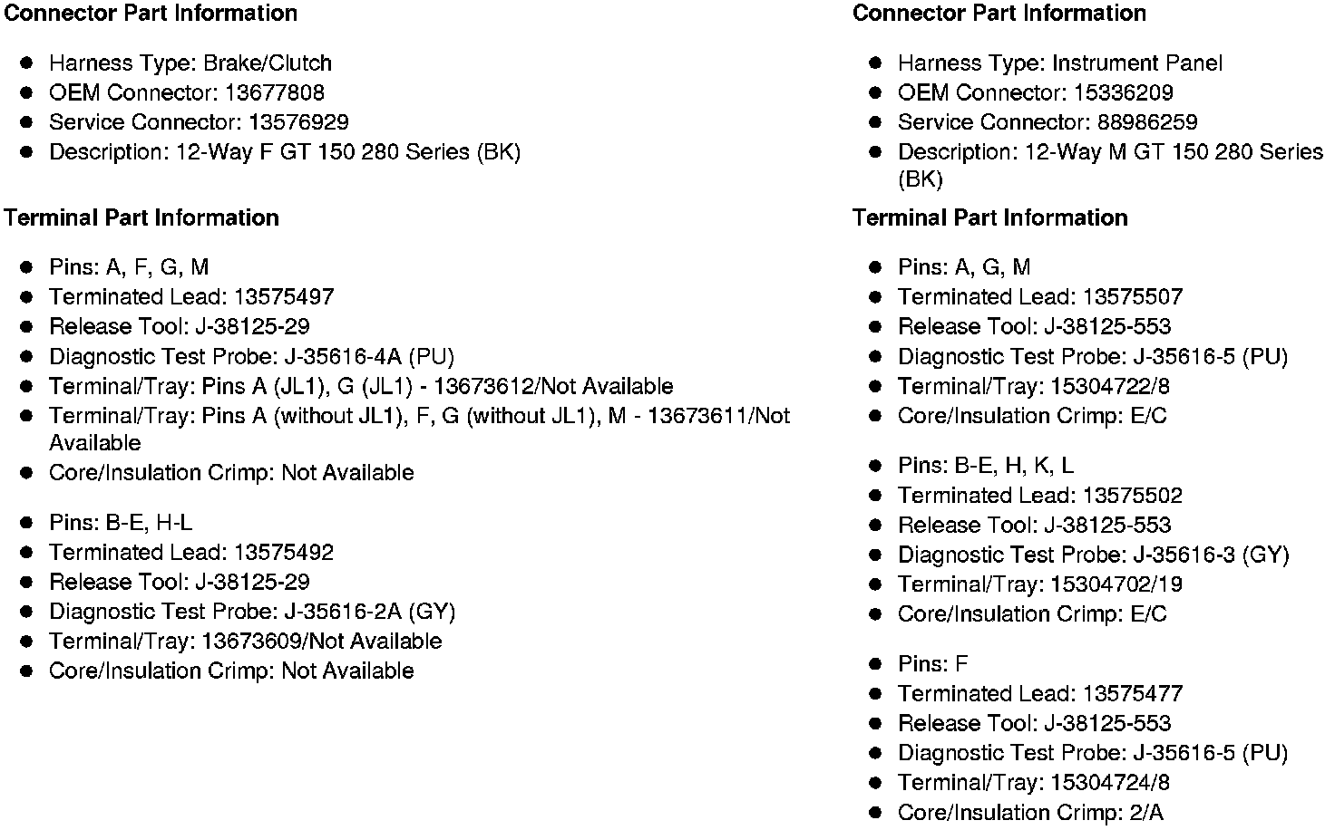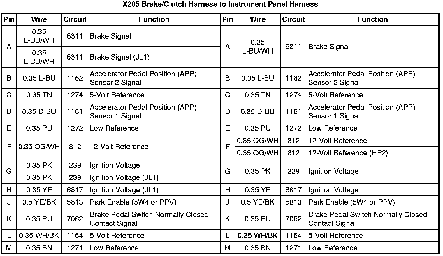 X205 Brake/Clutch Harness to Instrument Panel Harness