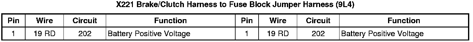 X221 Brake/Clutch Harness to Fuse Block Jumper Harness (9L4)