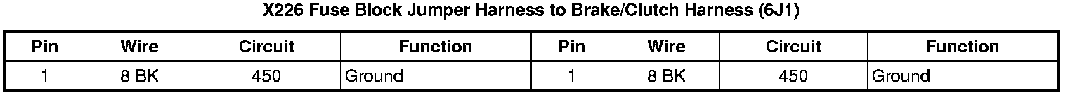 X226 Fuse Block Jumper Harness to Brake/Clutch Harness (6J1)