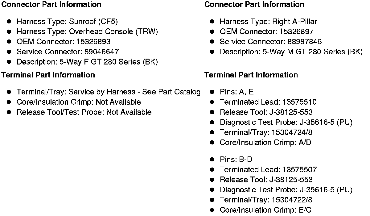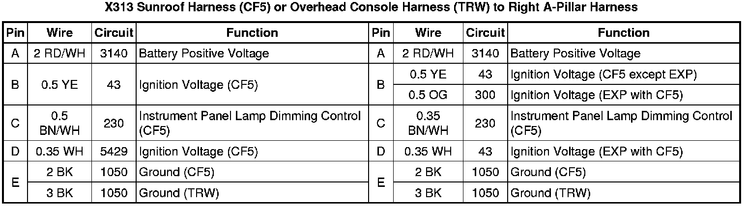 X313 Sunroof Harness (CF5) or Overhead Console Harness (TRW) to Right A-Pillar Harness