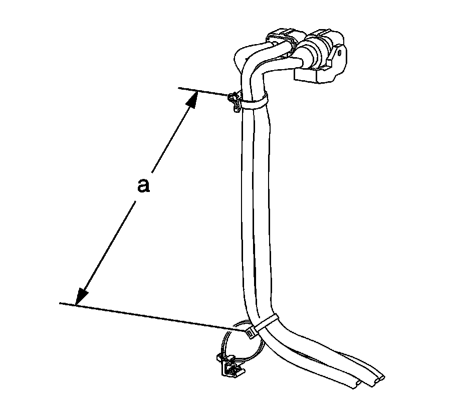 7. Measure Distance A on the power steering wiring harness extension harness from the previously installed fastener and make a mark. Distance A is 20.5 cm (8 in).