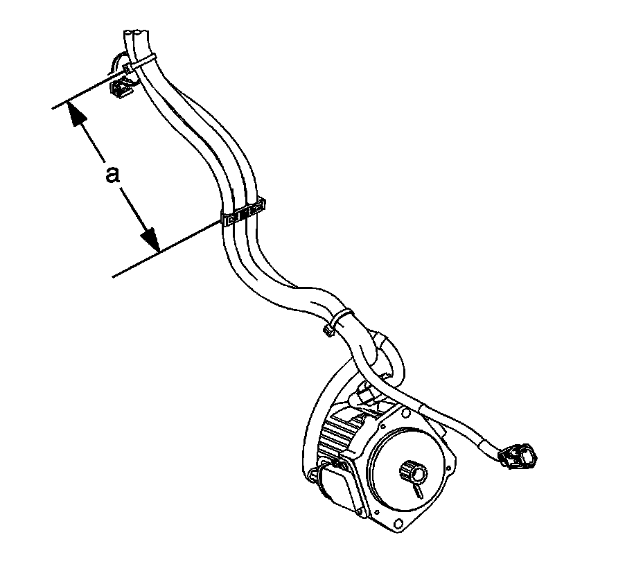 5. Measure Distance B on the power steering assist motor wiring harness from the top of the electrical connector and make a mark. Distance B is 12.5 cm (5 in).