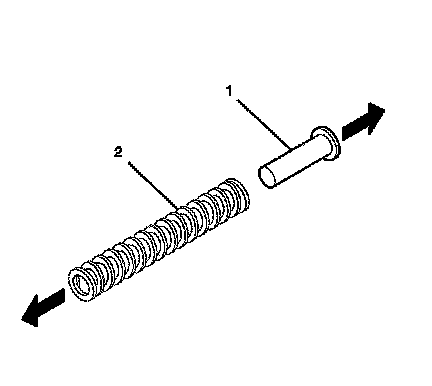 4. Remove the tilt spring (1) from the steering column (2) using the following procedure: