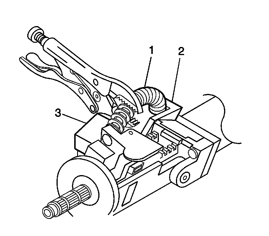 1. Install the tilt spring (1) onto the post on the steering column tilt head (3).