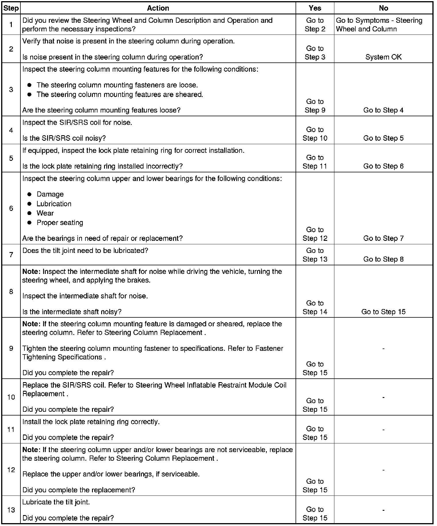 Noise in Steering Column