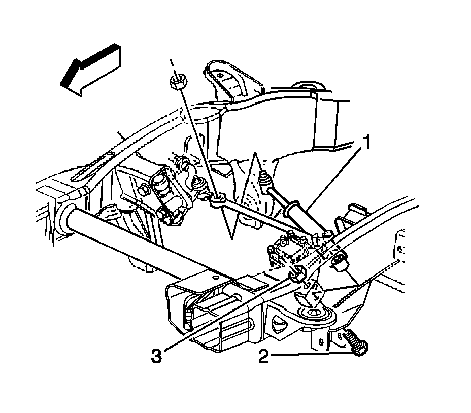 1. Install the steering linkage shock absorber (2) to the vehicle.