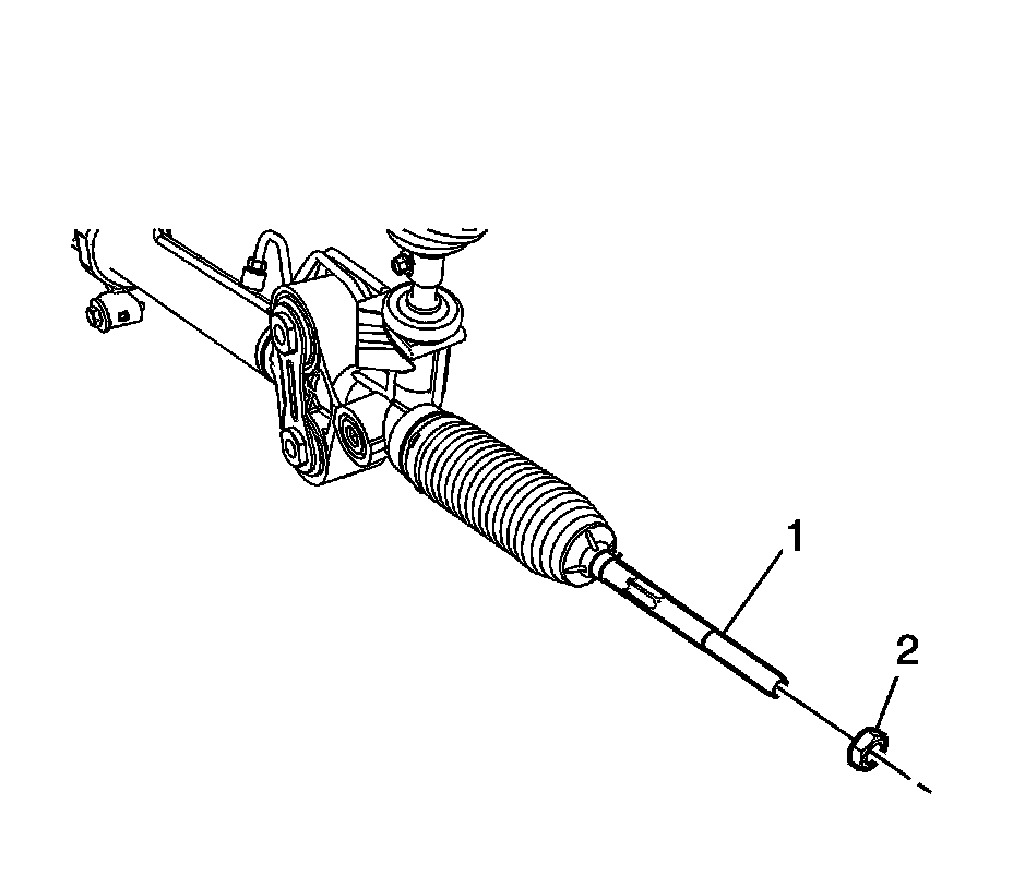2. Remove the steering linkage inner tie rod nut (2) from the steering linkage inner tie rod (1).