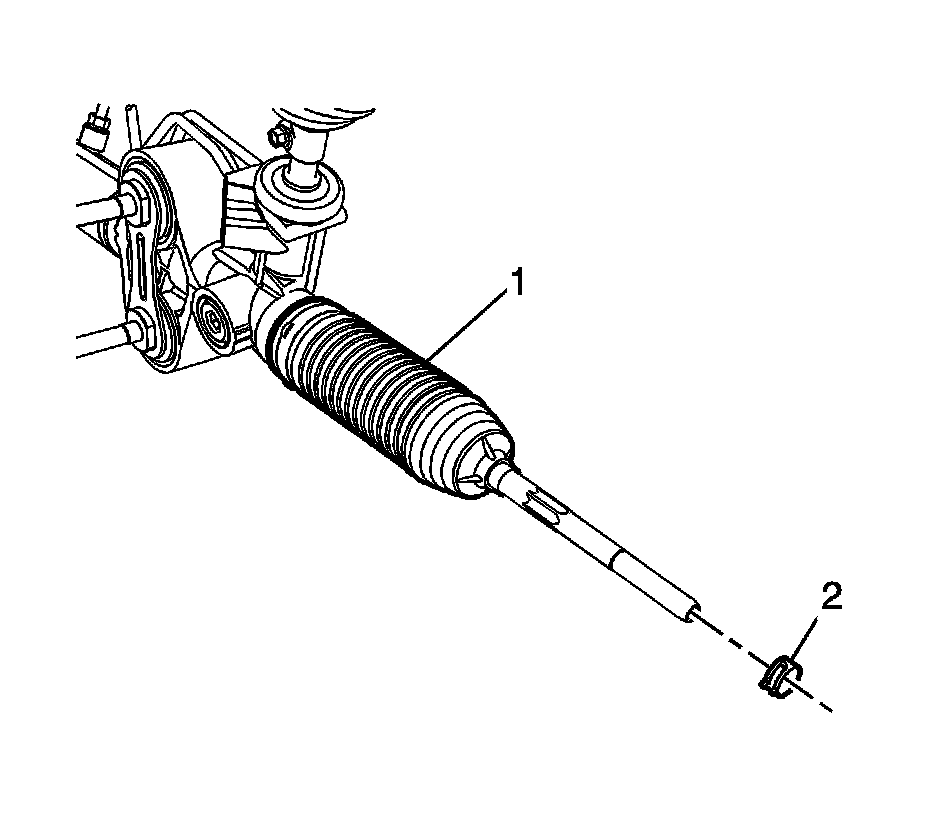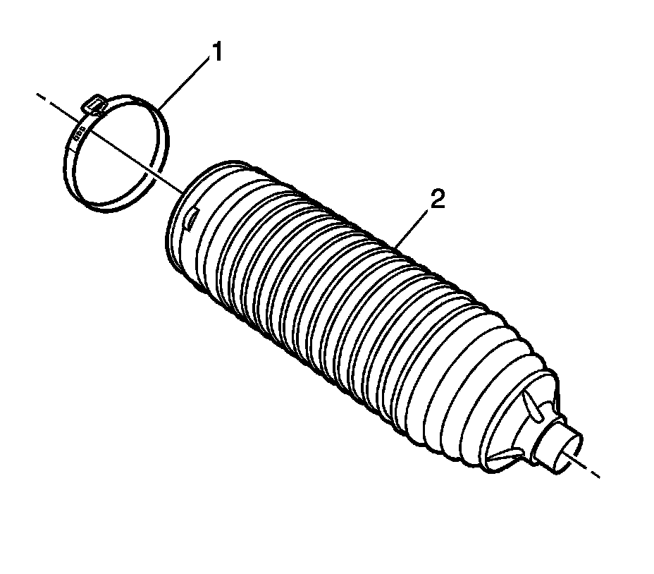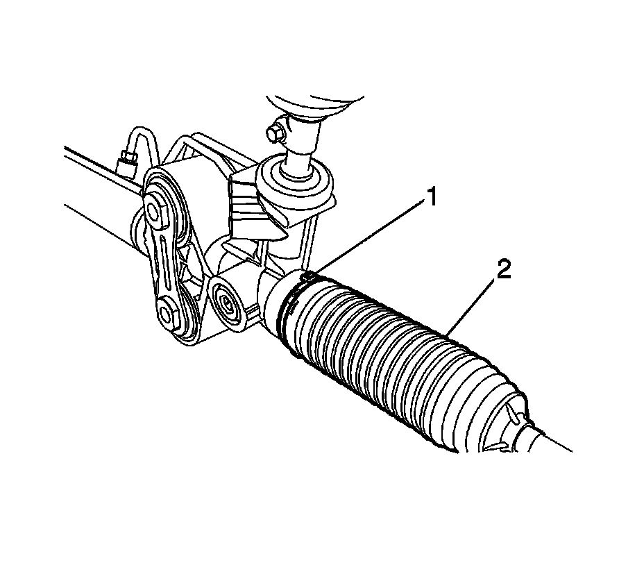 1. Position the NEW inner boot clamp (1) onto the steering gear boot (2).