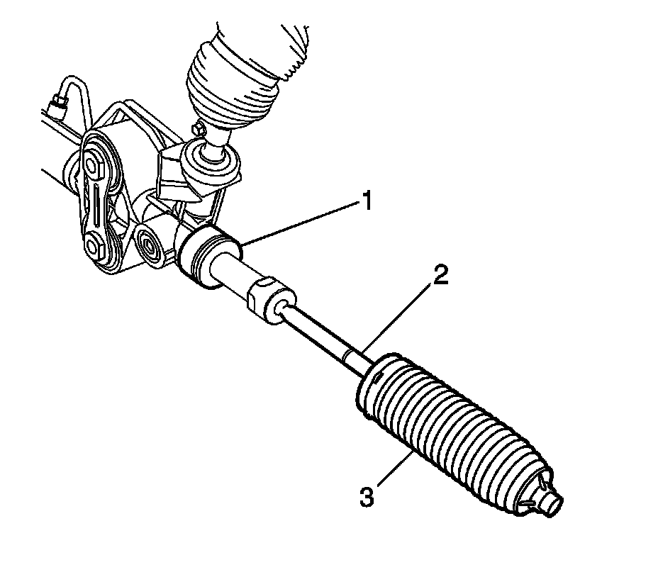 3. Install the steering gear boot (3) onto the steering linkage inner tie rod.