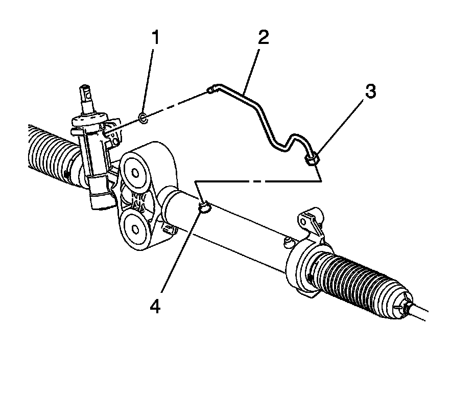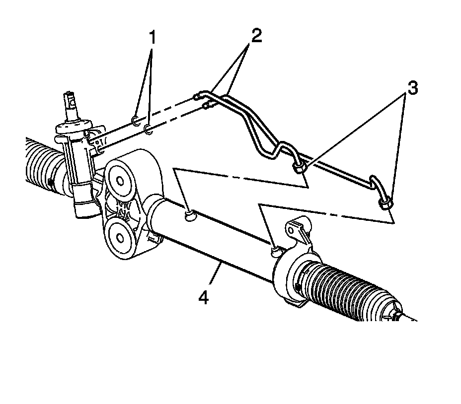 5. Remove and discard the steering gear cylinder pipe seals (1) from the steering gear (4).