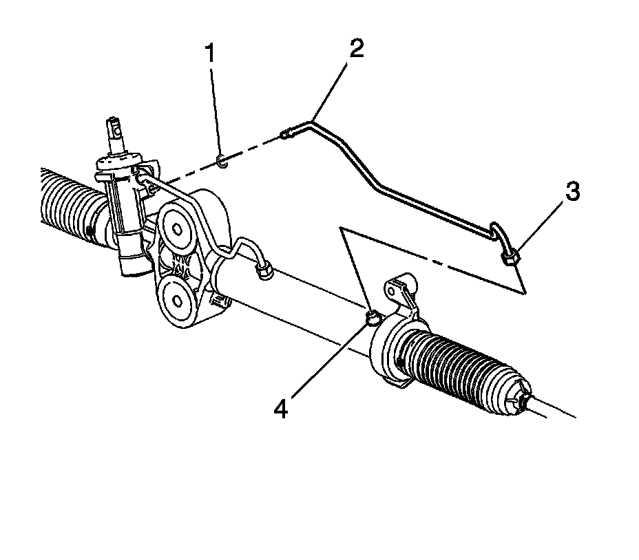 8. Place the threaded end of the steering gear cylinder pipe (3) onto the steering gear fitting (4).