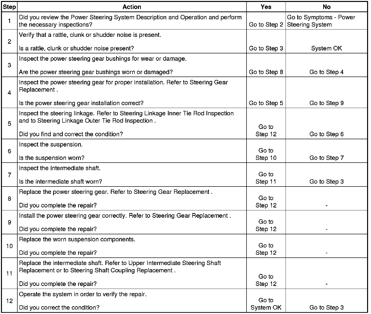 Rattle, Clunk, or Shudder Noise from the Power Steering System