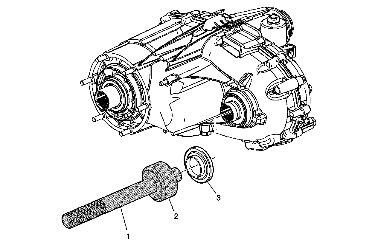 For service, the new design front output shaft, deflector and new design seal may be installed on current and prior model year Magna NQF-HD/SHD, NQG-LD/HD, NQH-LD/HD and NP0 applications providing the new design front output shaft is also installed. The front output shaft deflector is to be installed using the J 8092 - driver handle (1) and DT 50649 - seal installer (2).