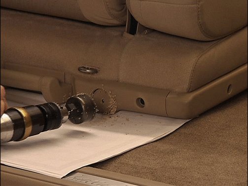 Ensure that the hole saw centering drill does not protrude more than 3.0 mm (1/8 in) past the saw teeth. This is to prevent the drill bit from damaging the seat cover.