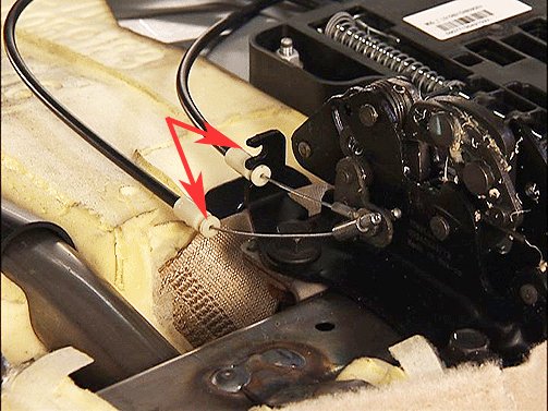 7. Observe correct seat latch release cable routing as shown in the image above.