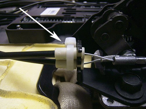 11. Using a large pair of locking-type pliers, squeeze the cable brackets as shown. This will lock the cable into the bracket.
