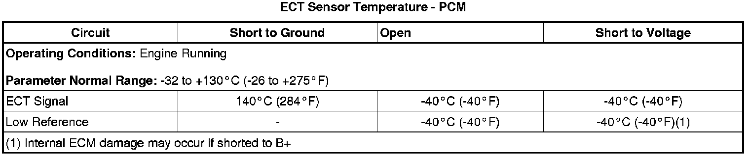 An example table from an engine coolant temperature (ECT) procedure: