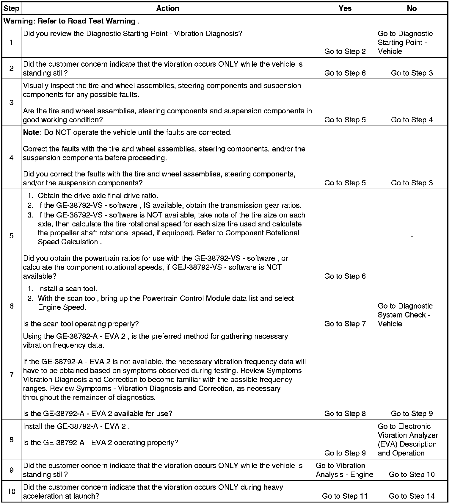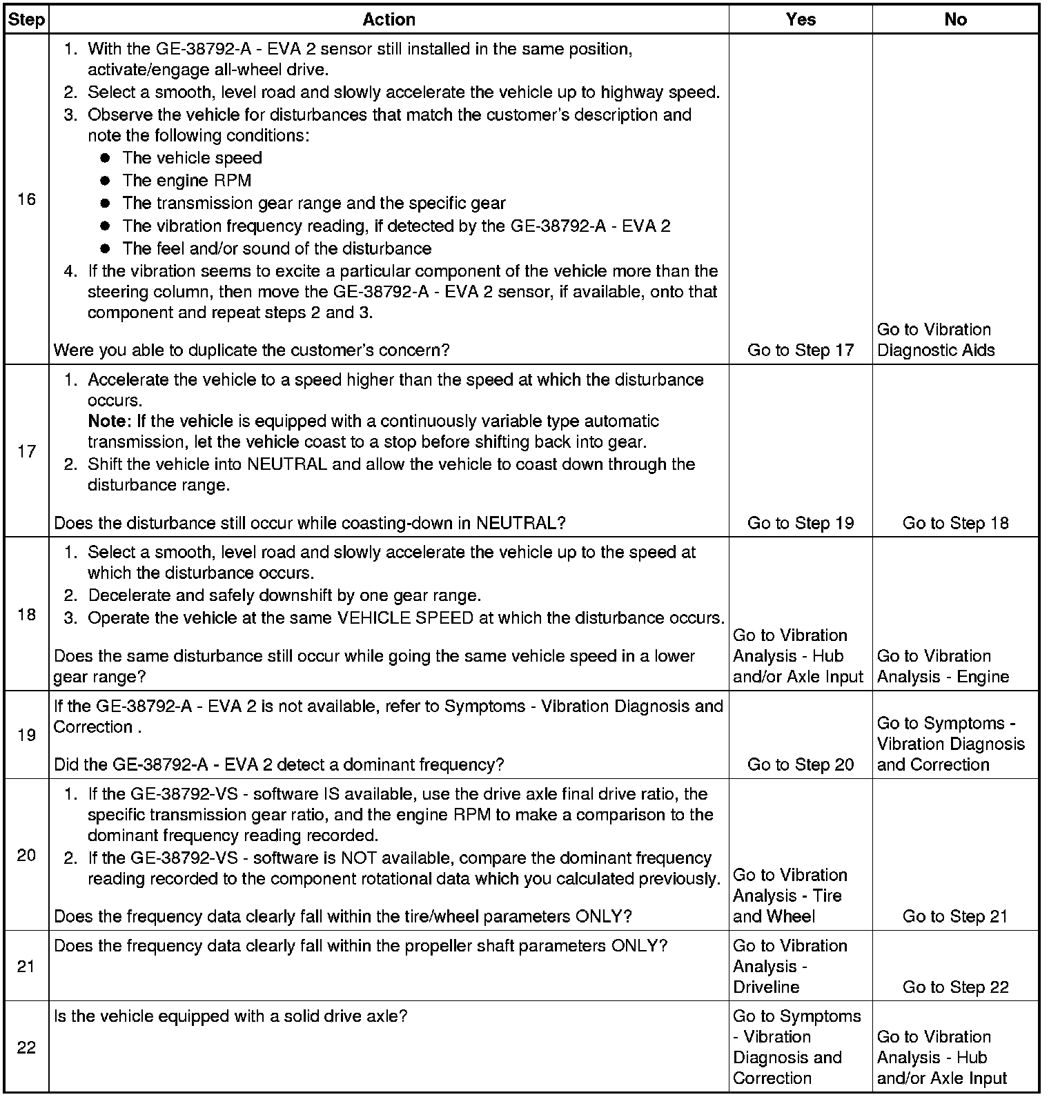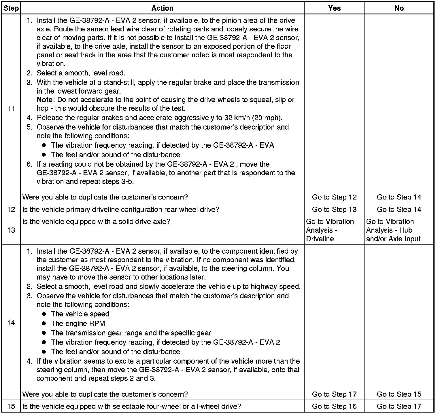 5. Obtaining rotational speed for the components rotating at tire/wheel speed is critical to systematically eliminating specific vehicle component groups. These component rotational speeds can be generated by using the GE-38792-A - Vibrate Software , or through calculating them manually.