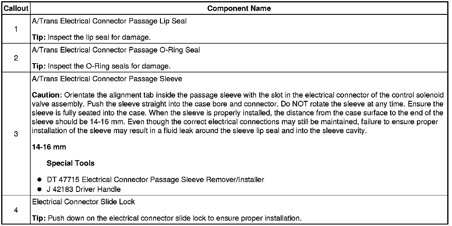 58. Automatic Transmission Electrical Connector Passage Sleeve Installation