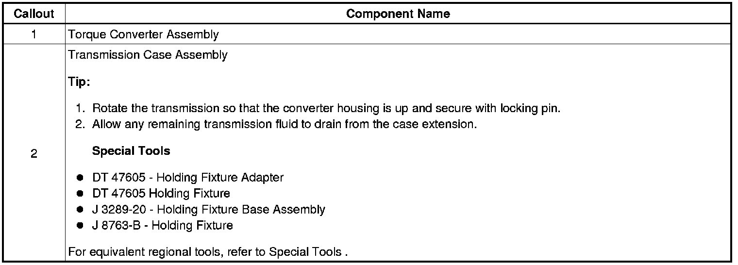 1. Torque Converter Removal and Holding Fixture Installation
