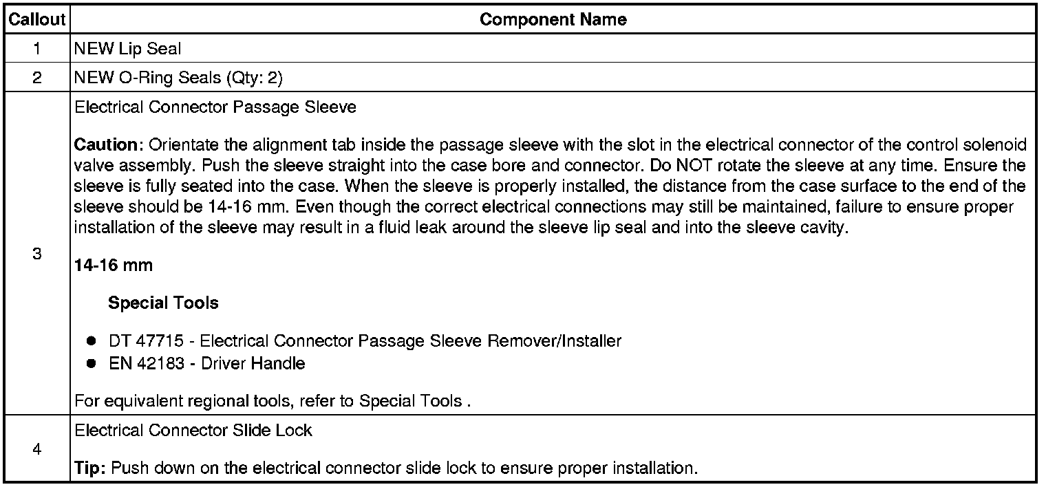 46. Automatic Transmission Electrical Connector Passage Sleeve Installation