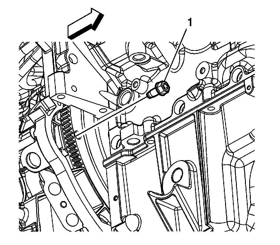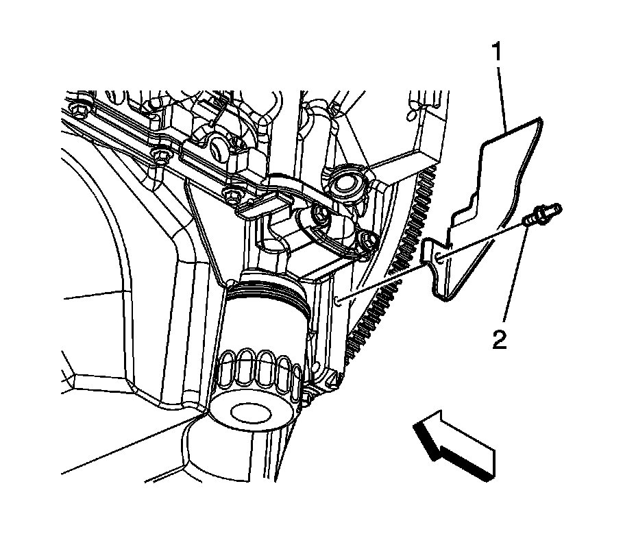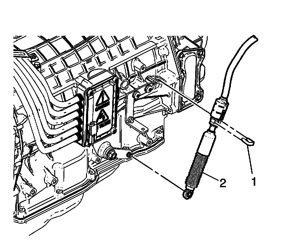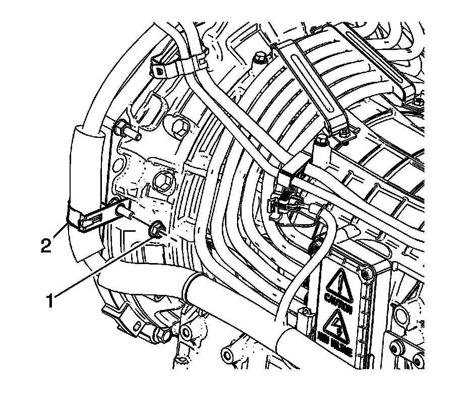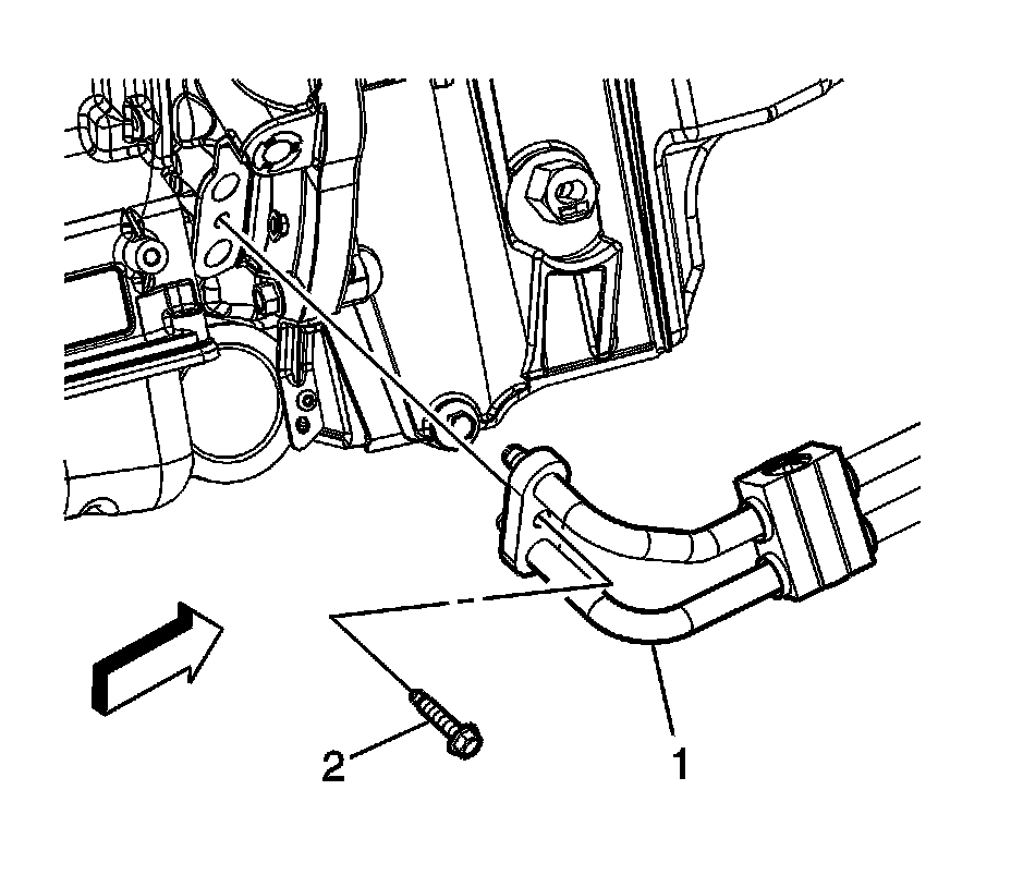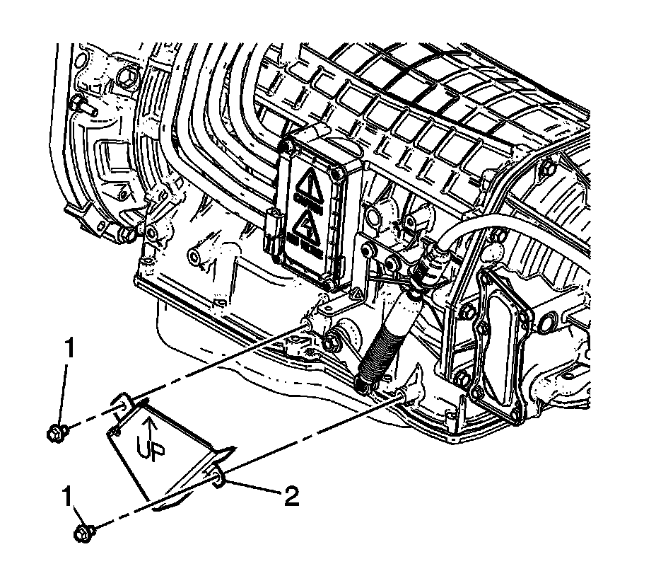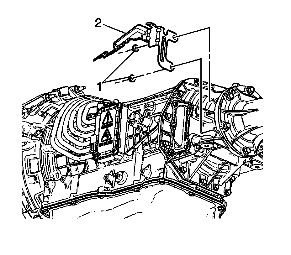 8. Install the fluid filler tube bracket (1) to the transmission.