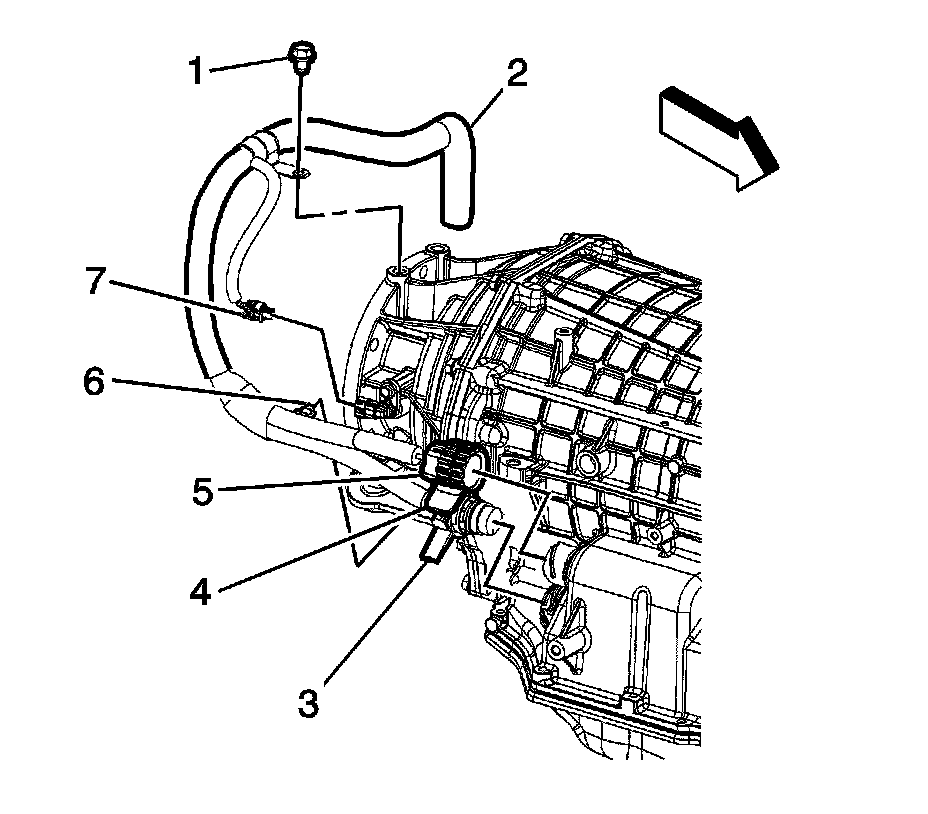 38. Disconnect the transmission electrical harness connector (7) from the vehicle speed sensor (5).